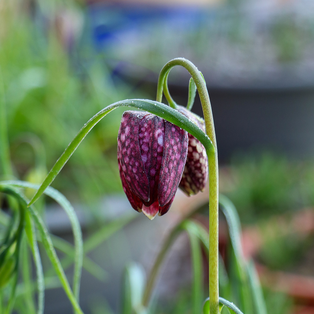 Fritillaria meleagris ‘Alba’ is the white snake’s head, which used to be researched and bred, but with little success. It blooms in April-May and naturalises on its own. It does not require any special care.