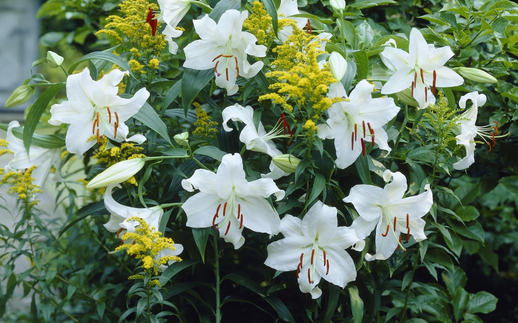 A truly amazing lily to plant in your garden is the Lily Casa Blanca (Lilium orientalis ‘Casa Blanca’). Lily Casa Blanca is an oriental lily that will give many big (up to 15 cm wide) white flowers for many years straight. This lily flowers every year in August and September and has stems of 100 to 150 cm tall. Lilium Casa Blanca is also very trustworthy as a cut flower and looks amazing in bouquets. Lily Casa Blanca will steal the show in bouquets in a white or blue-white theme.