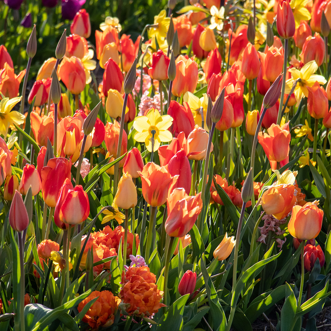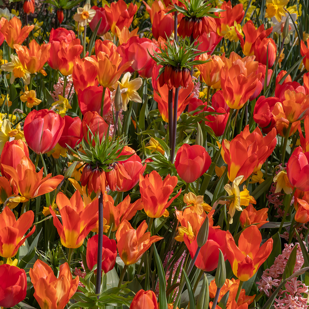 This flower bulb mix "on Fire" is a great mix of mainly daffodils and tulips but also other impressive spring bloomers. The cheerful colors of red, orange, yellow and the green of the leaves give this spring bloomer mix an incredibly beautiful look.
