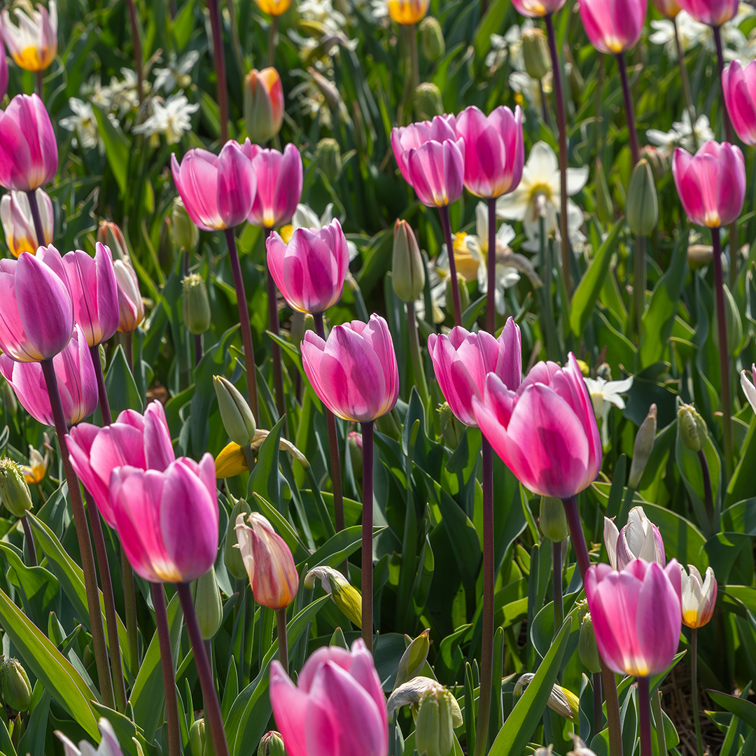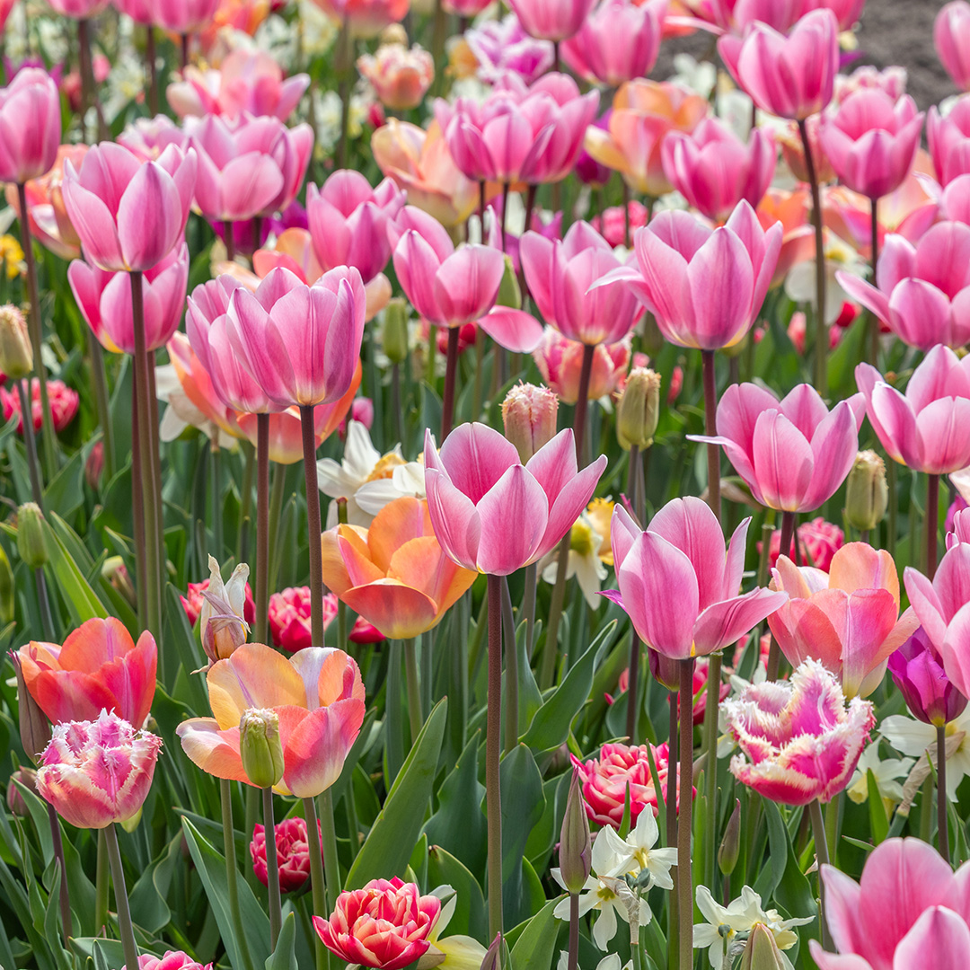 Bring the serene beauty of an awakening spring garden into your home with the 'Sakura' mix. This carefully crafted combination brings together the best of both worlds: the stately elegance of the tulip and the cheerful, playful shape of the daffodil. The result is a harmonious display of soft pink, cream, lilac, and salmon. The mix ranges from soft pink to lilac and salmon. Just like real sakura (cherry blossom), the colors subtly change as the flowers ripen, creating a vibrant effect. The selected tulips and daffodils in this mix are coordinated so that they bloom simultaneously. No empty spaces, but a full and abundant flowerbed. The tight calyxes of the tulips create a beautiful contrast with the delicate crowns of the daffodils. This gives the border depth and a luxurious appearance. Want to transform your garden into a romantic paradise? The 'Sakura' mix is a beautiful combination for those who love a soft, aesthetic spring garden.